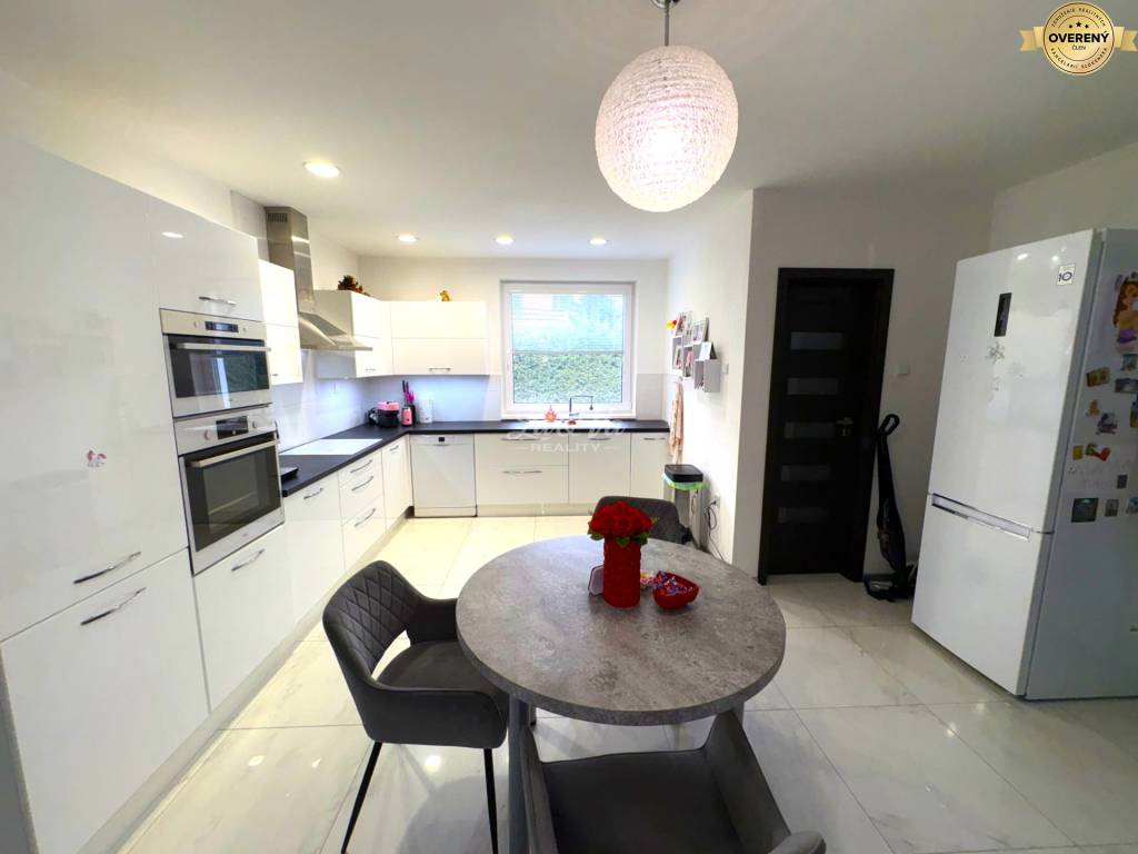 Rodinný dom prešiel kompletnou rekonštrukciou: podlahy, steny, stierky, omietky, stropy, dvere, kuchyňa so stavanými spotrebičmi na mieru, kúpeľne, rolldor skriňa, plastové okná s trojsklom, elektroinštalácia, rozvody vody, ústredné vykurovanie, el. brána na vstupnej bráne a garáži strecha, zateplenie.
