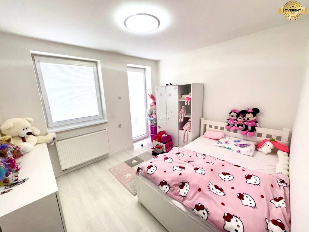 Na poschodí sa nachádzajú tri samostatné izby, ktoré slúžia ako spálňa s rolldor skriňou a dve detské izby, kúpeľňa s vaňou aj so sprchovým kútom a s wc. Zo spálne a detskej izby je prístup na balkón a z druhej detskej izby na terasu orientovanú do záhrady.